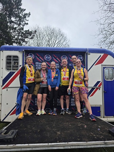 Sunday's ATW Bedford 5 mile and 10 mile races took an interesting turn following the recent downpours which meant a last minute alteration to the course to avoid flooded sections and leading to a rather unexpected shortening of the 5 mile distance for runners. Nonetheless runners were still able to benefit from a scenic, traffic-free route along Bedford embankment and out to the nearby picturesque Priory lake. For Biggleswade AC, 19 runners took part across the two race distances, with some inspired to sign up following last year's Club bingo challenge to do a 5 or 10 mile race in the new year. Leading the charge for Biggleswade in the 5 miler was Kishan Modi, finishing in a time of 28:29 and coming a fantastic 16th overall out of 317 runners. There were also several top 5 age category placings across the BAC team, with Natalie Morgan (2nd), Ian Grimwood (2nd), Andy Hedley (2nd), Stephen Atkins (3rd), Giles Hawthorne (4th), and Deb Bryant (5th). Unlike the 5 mile race, the 10 mile race was true to the distance and saw respectable times achieved by all BAC participants. Rob Morgan crossed the finish line first for the blue and yellows with a time of 1:06:27 and placing 3rd in his age category. Rob was followed shortly after by Phil Rowlett in 1:10:10 and Nicky Upperton in 1:13:31 and although hindered by a congested start both Phil and Nicky still came away with PBs on the day so many congratulations to them.